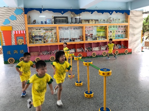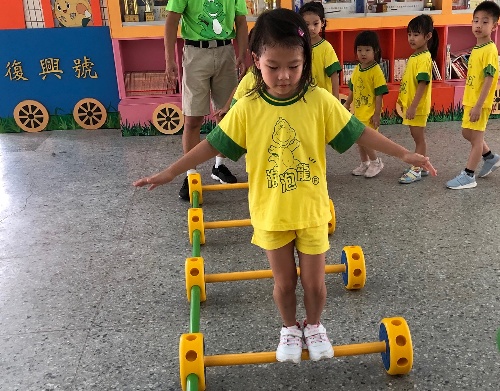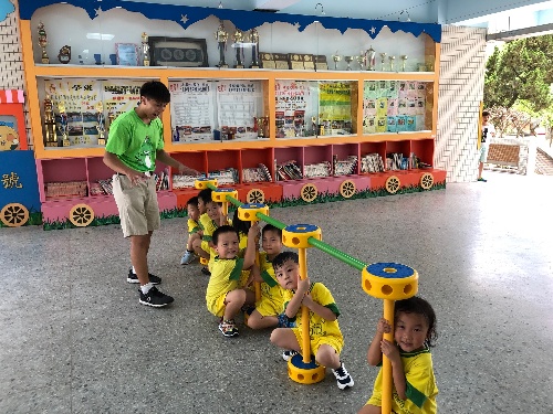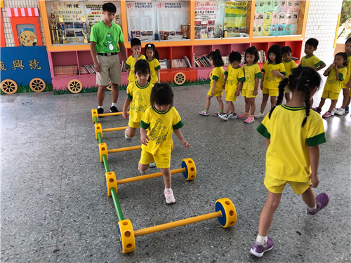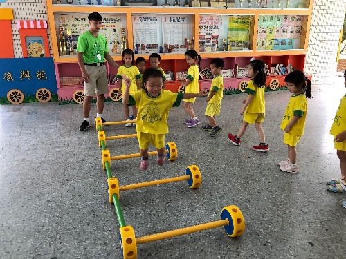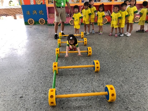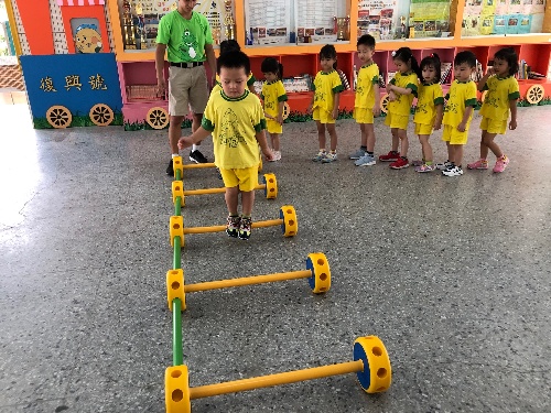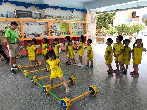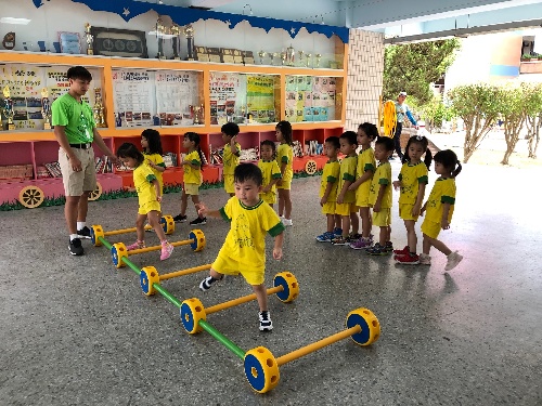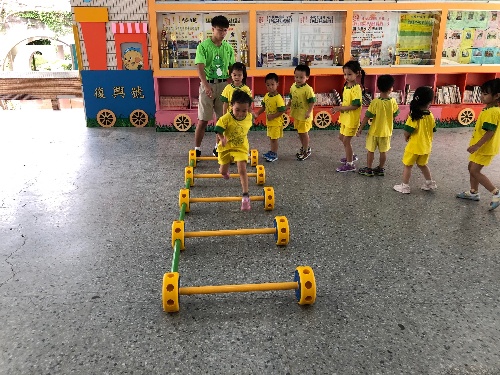 課程名稱:我是大猩猩 器材:中型桿子x 5支,黃輪x 10個