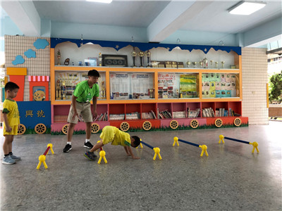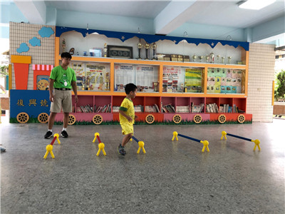 引導:小朋友變高手前我們要先熱身,先熟悉一下欄架的高度。